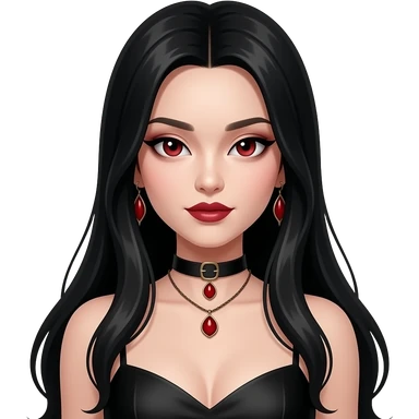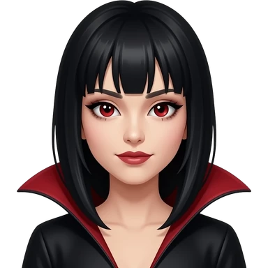 гарна азіатська жінка-вампір з чорним довгим волоссям, стирчать клики emoji