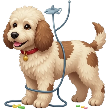 Сделай собаку породы лаготто раманойло ( она должна быть коричневая) и она должна быть на грумминге (давай изобразим груминг, как ножницы) emoji | AI Emoji Generator