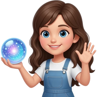 У девушки держит магический шар и махает рукой emoji