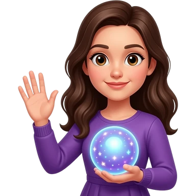 У девушки держит магический шар и махает рукой в фиолетовой одежде emoji