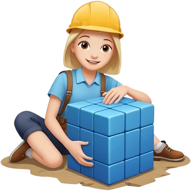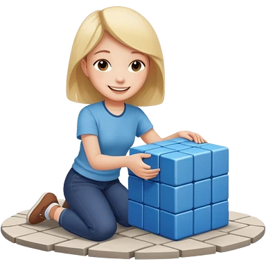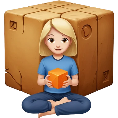 Стдуент, который аккуратно и с улыбкой ставит большой кубик на землю, словно строит фундамент. Ощущение безопасности и начала пути. emoji