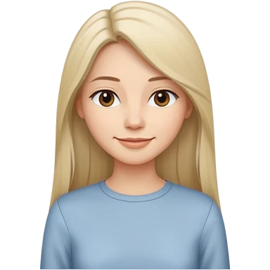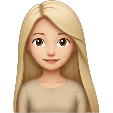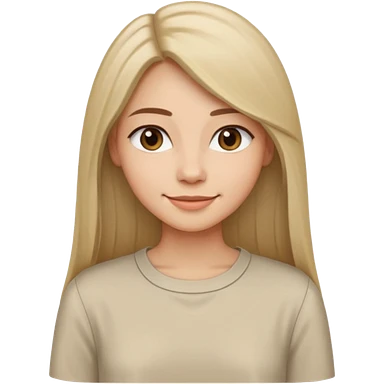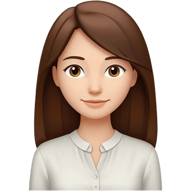 Женщина с длинными прямыми волосами, заправленными за плечи, мягкая доброжелательная улыбка, минималистичное платье или блузка светлого оттенка, стиль спокойный и современный. emoji