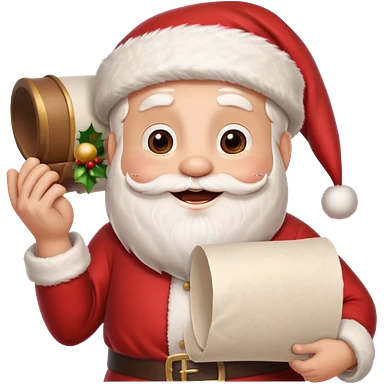 drunk santa holding up a white unfurled scroll with nothin on it emoji