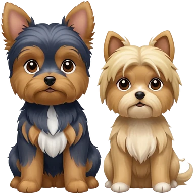 Generate a blue and tan purebred yorkie with a blonde shi tzu yorkie mix sitting next to each kther emoji