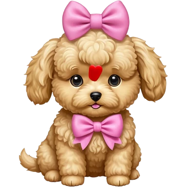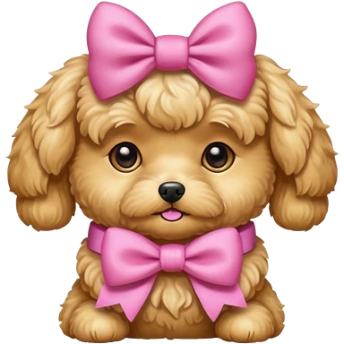 Golden maltipoo dog with pink bow k bow that is very poise emoji