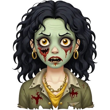 Create a zombie woman with voluminous wavy hair and a gold nose piercing. emoji