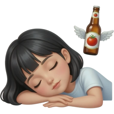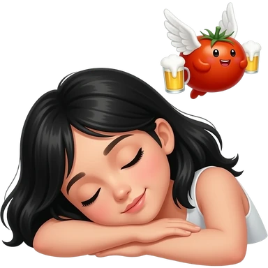 Спит девушка брюнетка а ей снится томатное пиво которое летает вокруг нее с крылышками emoji | AI Emoji Generator