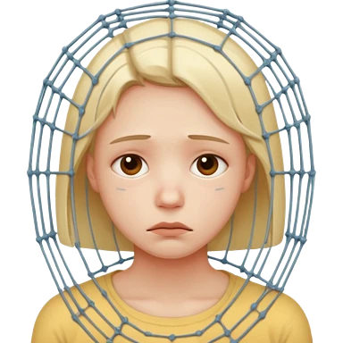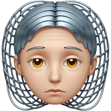 Emoji of a woman with eyes closed, getting an ultrasonic cavitation treatment on her cheek, blue waves showing vibration emoji