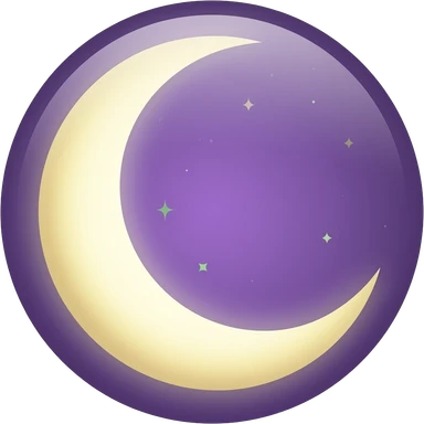 The Dreamer (🌙): “Elegant crescent moon in deep purple with soft golden yellow highlights and tiny green stars, dreamy mystical style, flat vector icon with gentle glow” emoji