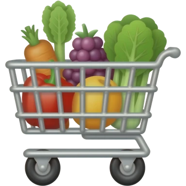 A 2D emoji grocery cart containing vegetables and fruits emoji