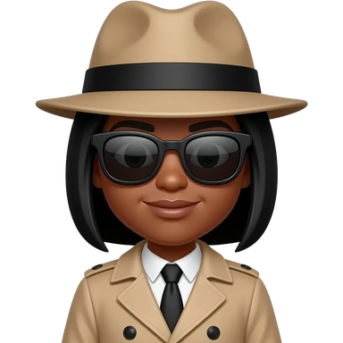 Black Girl Spy Emoji trench coat hat sunglasses emoji