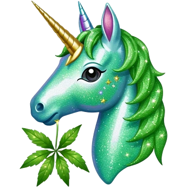 Glitter unicorn eats Weed leaf emoji