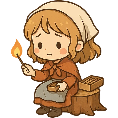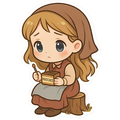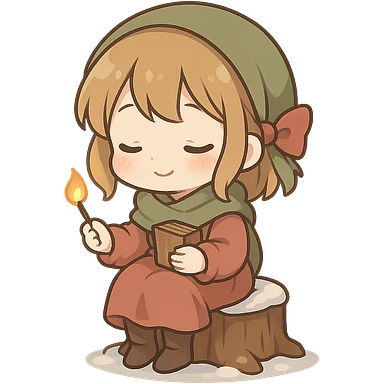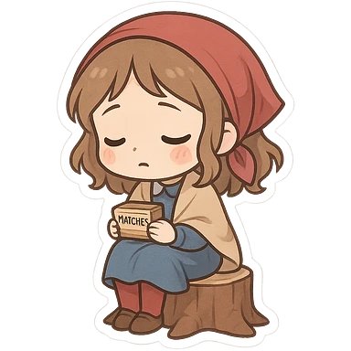 一个可爱的卖火柴的小女孩坐在一个矮树桩上 emoji