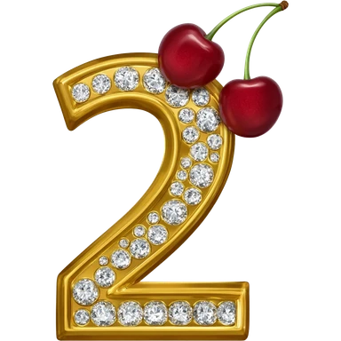 the number "2" in gold and diamond with a double cherry hanging on the number emoji