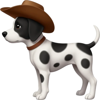 create a black and white dog with circular uniform stains with a brown gaucho's hat emoji