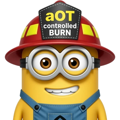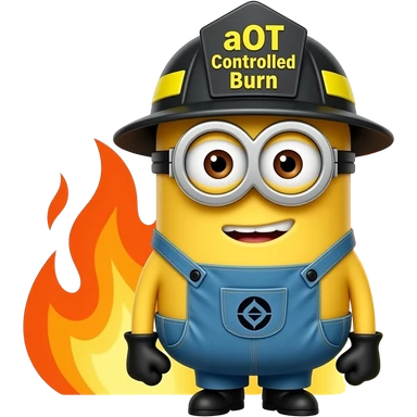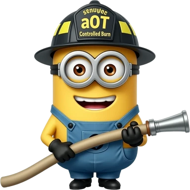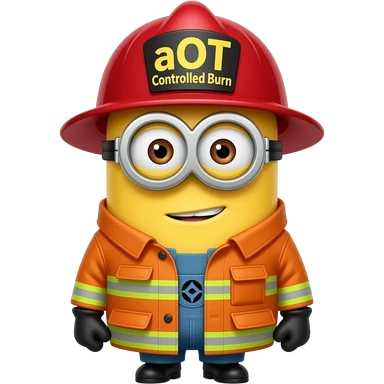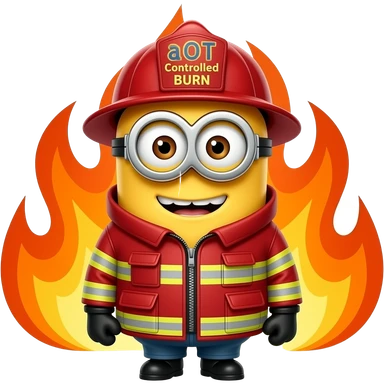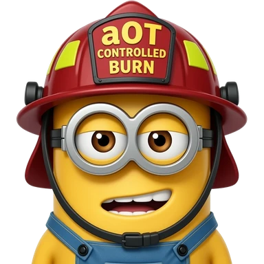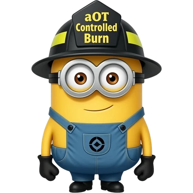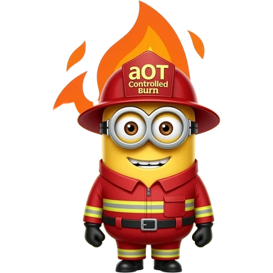minion dressed as a firefighter text aOT Controlled Burn on helmet emoji