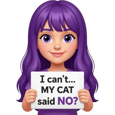 girl with long purple hair with a Ich kann nicht... MEINE KATZE hat NEIN gesagt sign emoji