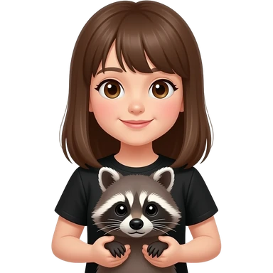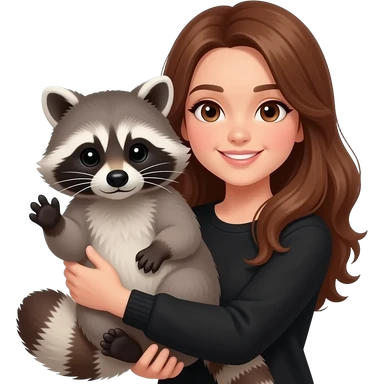 brown haired girl in black holding raccoon emoji