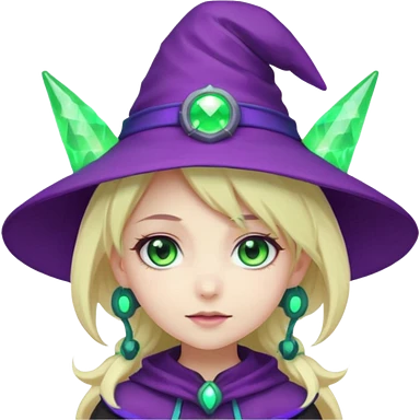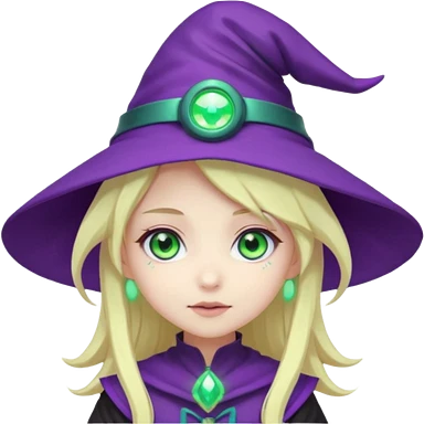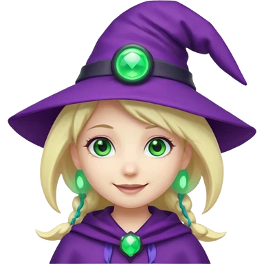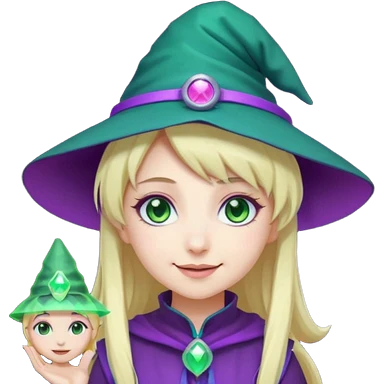 Make a blonde girl with green glowing headset on with teal eyes and a purple haired girl with green eyes waering a purple wit hes hat haveing fun , make them a chibi emoji page anime style emoji