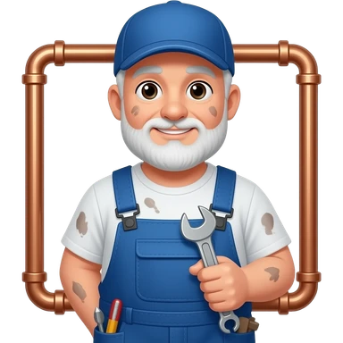 TRADIČNÍ INSTALATÉR S BRAŠNOU, STARŠÍ, LEHCE ŠPINAVÝ, TLUSTÝ, KTERÝ DĚLÁ TRUBKY, MÁ TAŠKU A NĚJAKÝ KLÍČ emoji