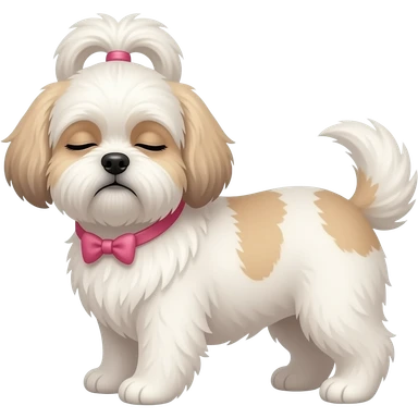 Blondie teenage girl sleeping with white Shitzu that has pink stripes emoji