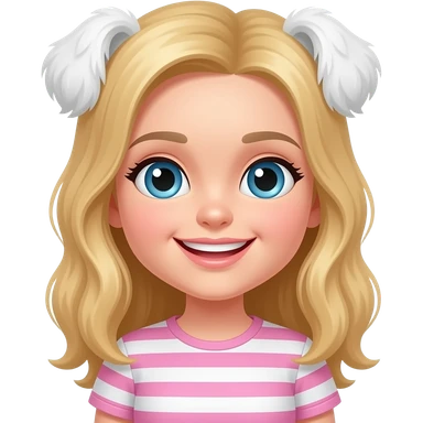 Blondie teenage girl smiling with white Shitzu that has pink stripes emoji