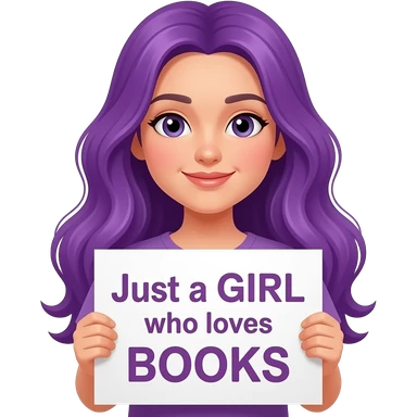 girl with long purple hair with a Just a GIRL who loves BOOKS sign emoji