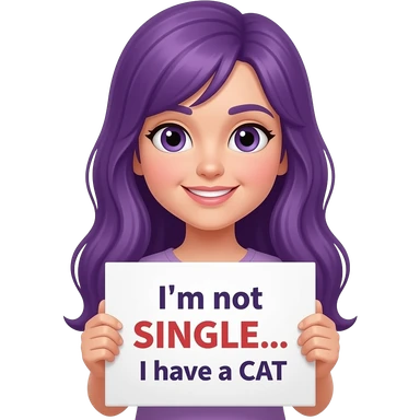 girl with long purple hair with a I'm not SINGLE... I have CATS sign emoji