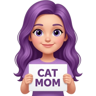 girl with long purple hair with a CAT MOM sign emoji