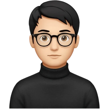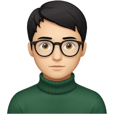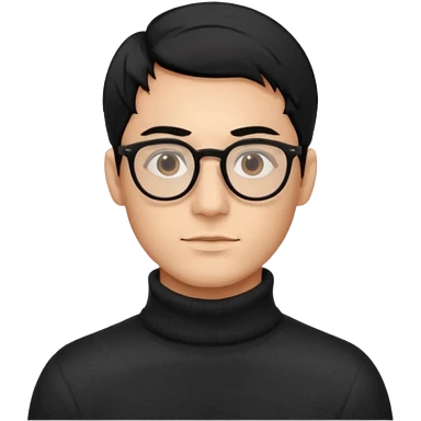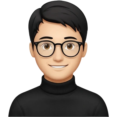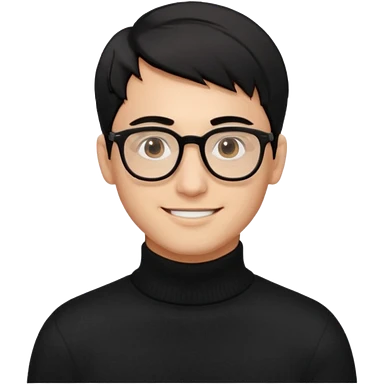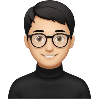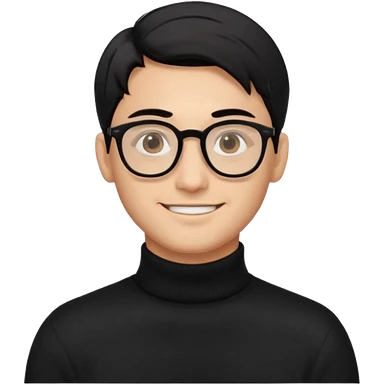 Создай эмодзи, мужчина, 26 лет, стрижка side-part, чёрные волосы, карие глаза, чёрный свитер-гольф, смуглый цвет кожи, очки, улыбается emoji