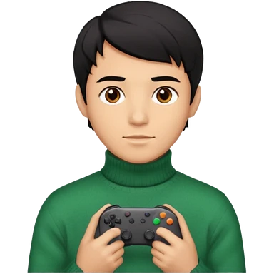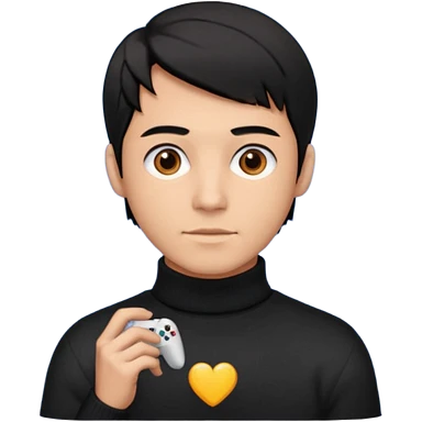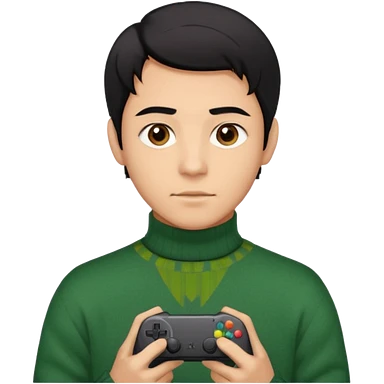 Создай эмодзи, внешность гаммин, мужчина, 26 лет, стрижка side-part, чёрные волосы, карие глаза, свитер-гольф, смуглый цвет кожи emoji