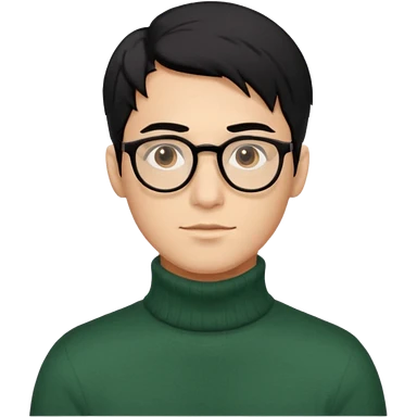 Создай эмодзи, мужчина, 26 лет, стрижка side-part, чёрные волосы, карие глаза, свитер-гольф, смуглый цвет кожи, очки emoji