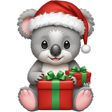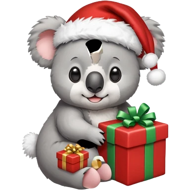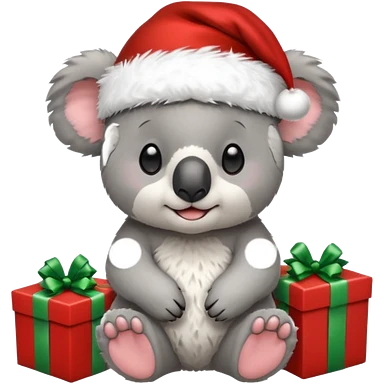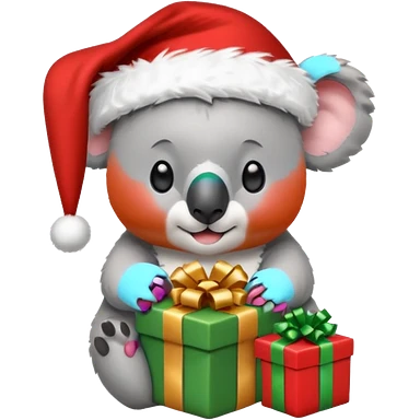 Koala with a santa hat and presents around him emoji