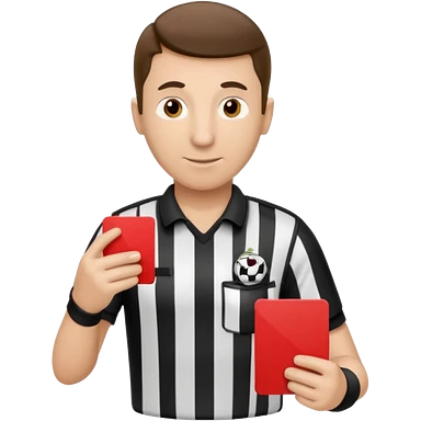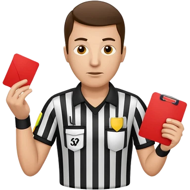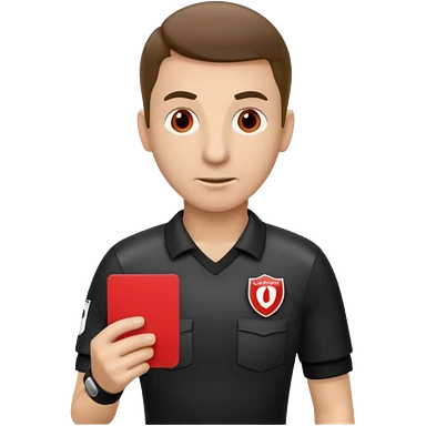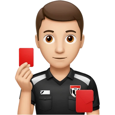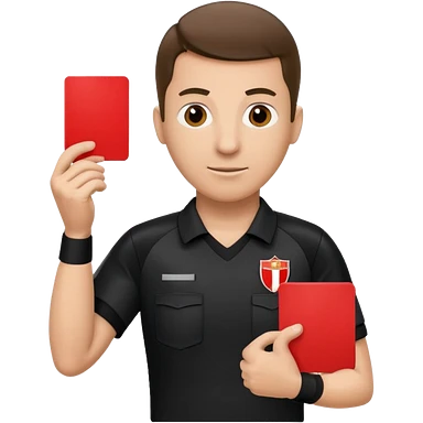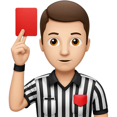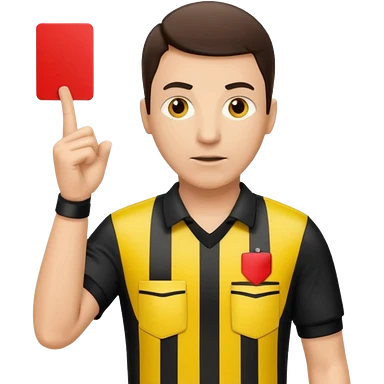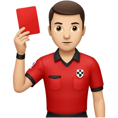 Изображение футбольного судьи, в руках которого красная карточка из футбола. Судья не улыбается emoji
