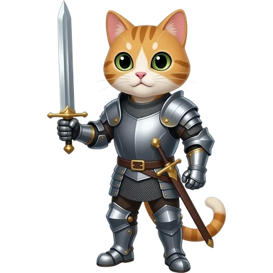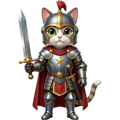 Кіт в англійських обладунках з мечем в повний зріст, він людиноподібний emoji
