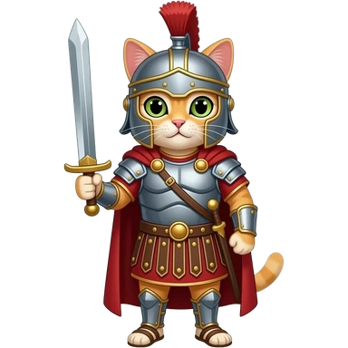 кіт в римських обладунках а з мечем в повний зріст emoji
