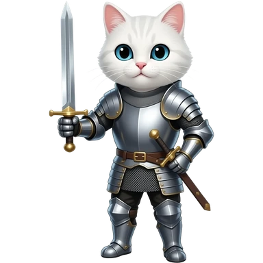 білий кіт в французських обладунках з мечем в повний зріст emoji