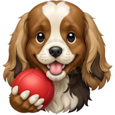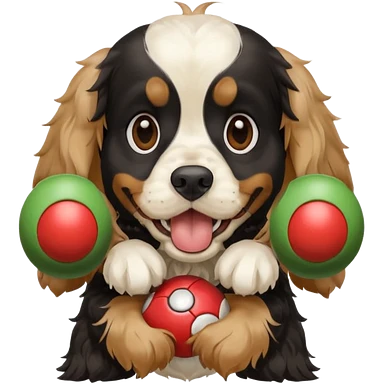 Собака породы черно-белый русский кокер спаниель с покеболом в зубах emoji | AI Emoji Generator