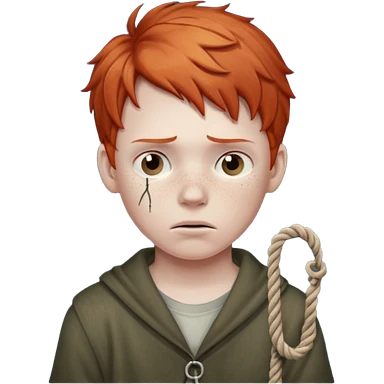 15 year old girl with pale skin, dark freckles, rosy cheeks, and wavy brown hair. emoji