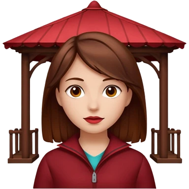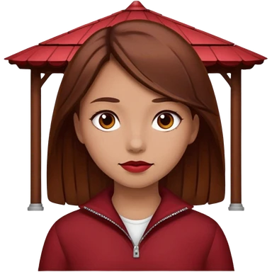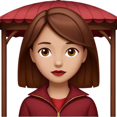 دختری که موهای قهوه ای داره و پاویون قرمز تیره داره emoji