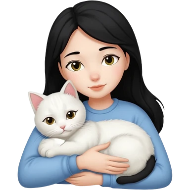 black-hair-girl snuggle with white cat emoji