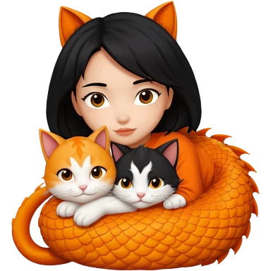 black-hair-girl snuggle with dragon lee cat emoji