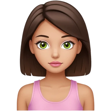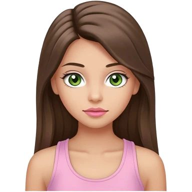 Create a teen girl wearing a light pink tank top. She will have long brunette hair, tan skin, pink lips, and grey-green eyes. She has long eyelashes. emoji