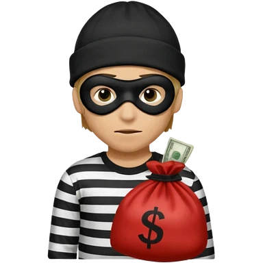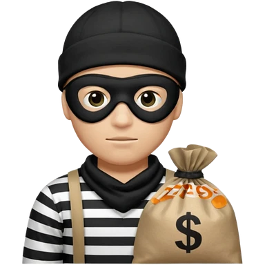 robber wears black eye mask and black beanies with money bag beside him emoji