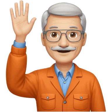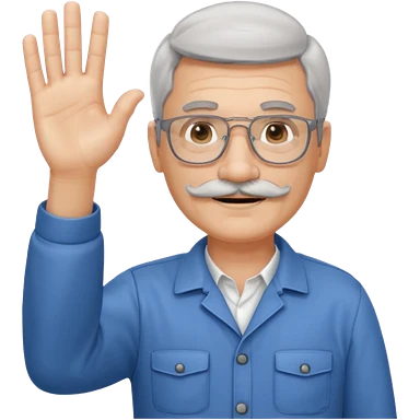 60 yr man with partially gray hair, mustache, light glasses, work clotheswaving hello emoji