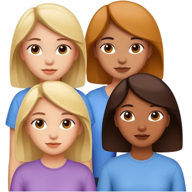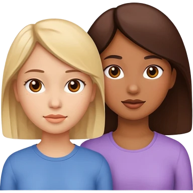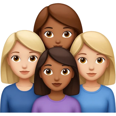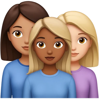 Компанія дівчат троє одна дівчина з чорним волоссям хвилястим довгим карими очима, друга з блондинистим довгим волоссям блакитними очима, третя з темним каштановим волоссям і зеленими очима, вони усі обіймаються emoji | AI Emoji Generator