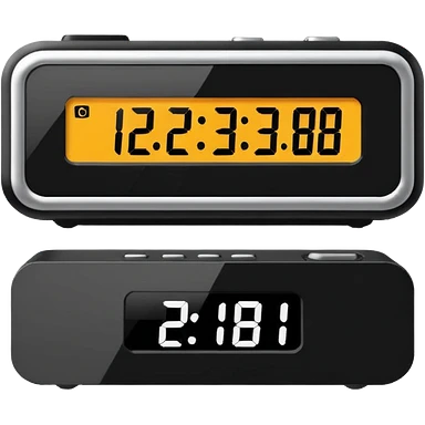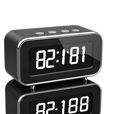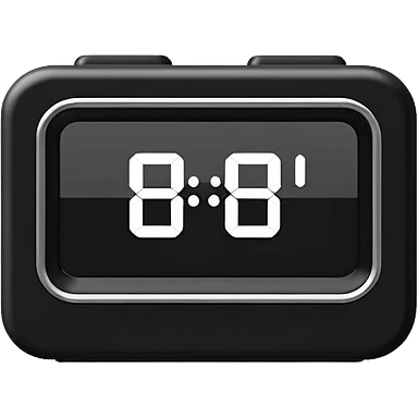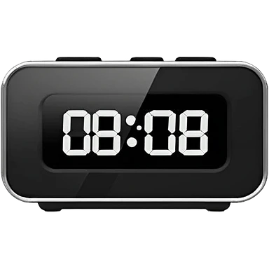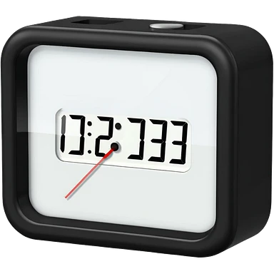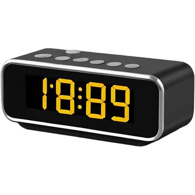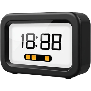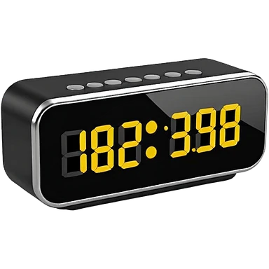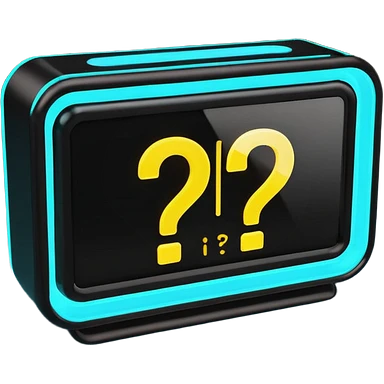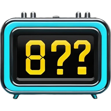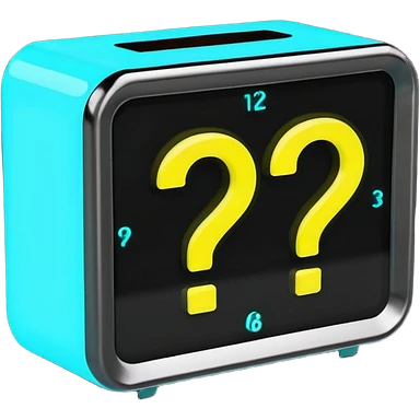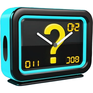 rectangular digital alarm clock with a question mark where the time would usually be emoji
