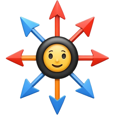 “Didactic emoji illustrating centripetal movement from the center outward, with a central dot and arrows expanding in all directions, clean flat design, bold lines, simple colors, educational style, transparent background.” emoji