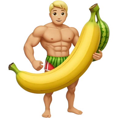 banana as superhuman. add watermelons in background emoji