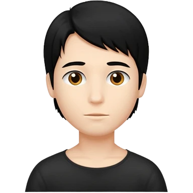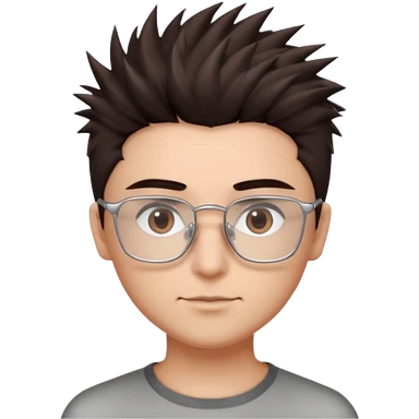 personagem com corte de cabelo espetadinho curto indo até o pescoço, cabelo castanho escuro, olho castanho escuro, sombrancelha castanho escuro, óculos sem aro prata quadrado. rosto fino emoji